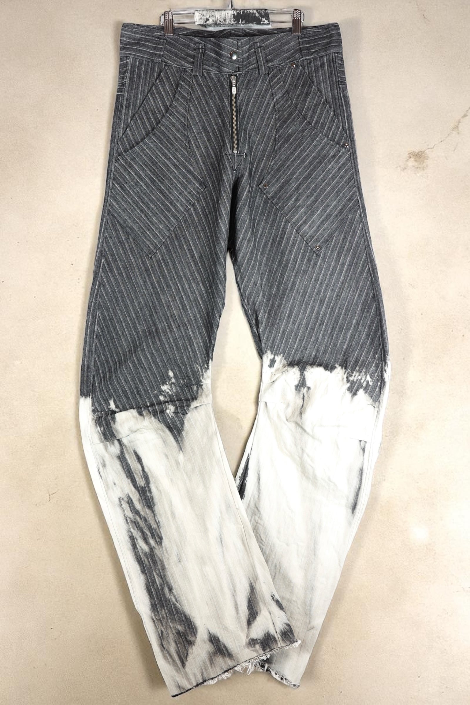 REXの特徴の一つとして、腰パンスタイルで美しいシルエットが出せる様[裾溜まり]に注目し、ロングレングスながら緩やかなブーツカット仕様で近年流行りのバギーデニムやワイドデニム程太くは無くストレートよりはインパクトが出る様設計しております。