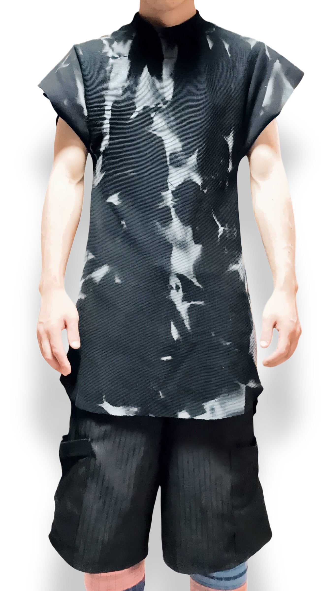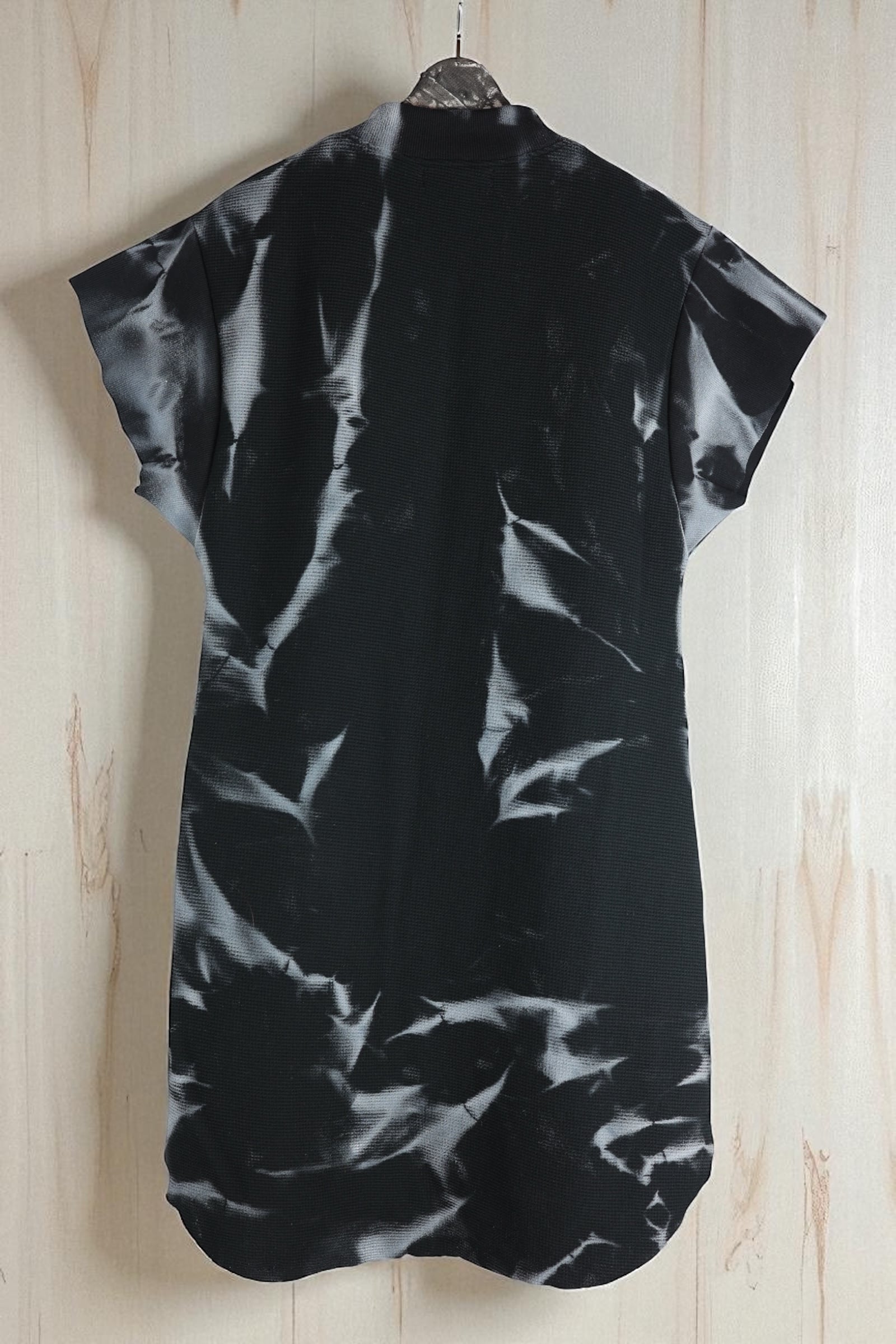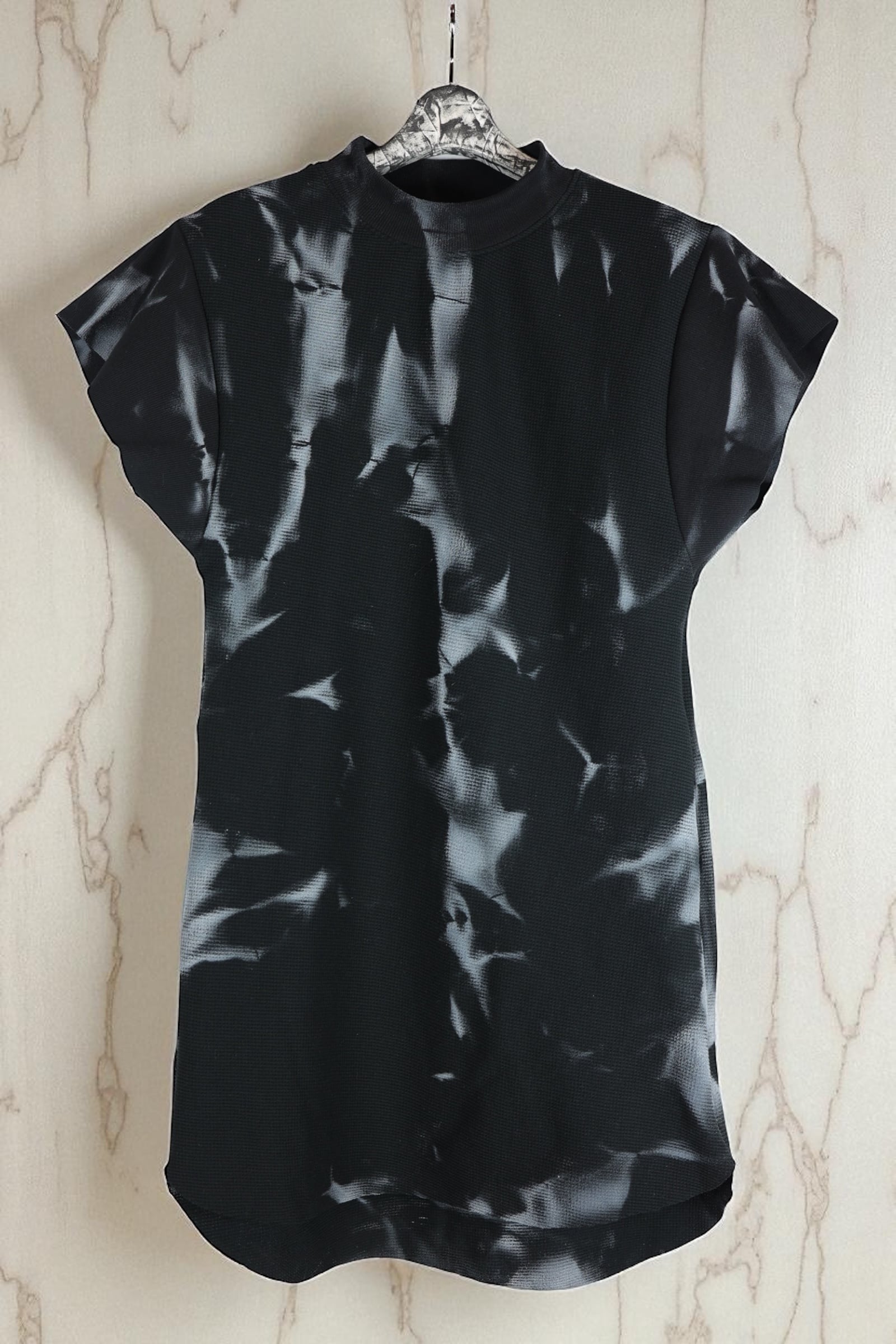 極短めに設定された袖丈は全体をすっきりと魅せてスタイルアップ効果を発揮しつつ、首の詰まりを調整設計した事で程よい肌の露出バランスを保ちモードな印象を与えます。